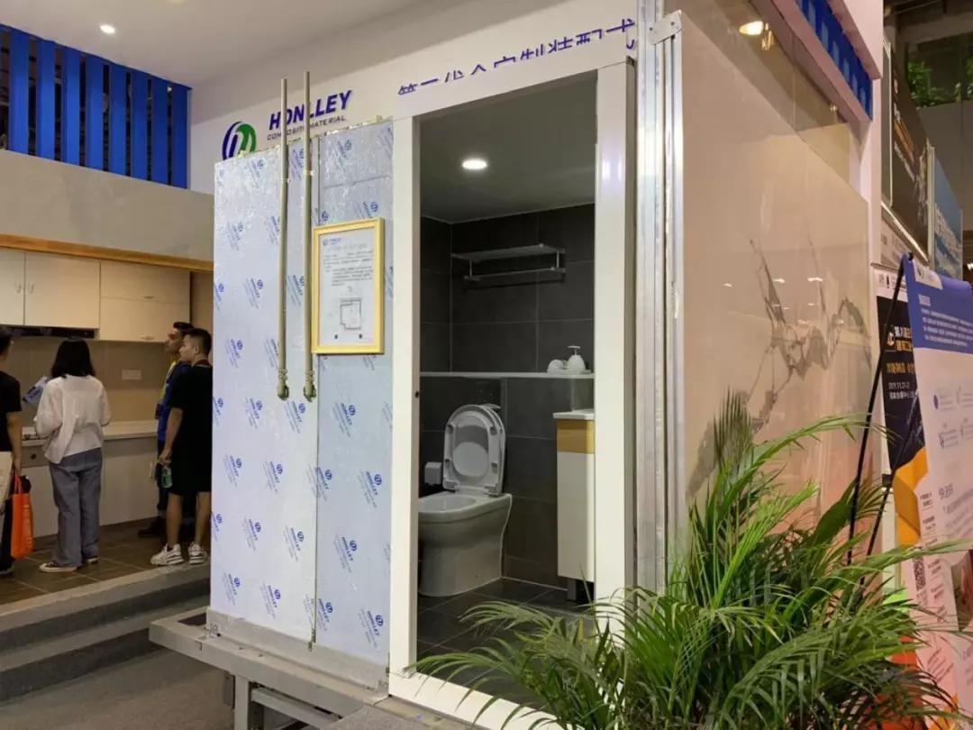 作为海鸥住工旗下整装公司,有巢氏·福润达携多个装配式卫生套间参展,主要以使用瓷砖作墙面的产品为主。此外,该公司还以拆解的方式展示了整装卫浴的底盘结构、排水系统、窗台结构等,吸引不少观众驻足了解。