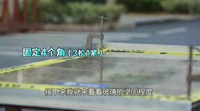 安装加固钢化玻璃时,要求四周受力均匀。但大史故意在其中一个角拧紧螺丝,来模拟施工不当的情况。