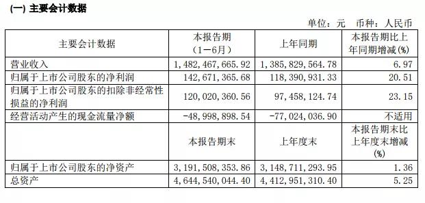 2019上半年财报显示,2019上半年营收27亿,同比增长7.27%,归属于上市公司股东净利润2.16亿元,同比增长5.11%。