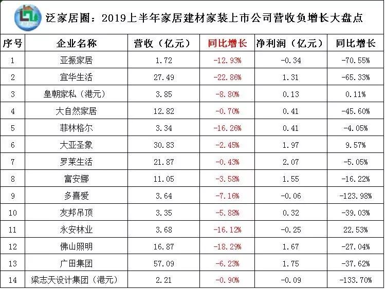关于半年报,据不完全统计,去年9月整理的67家上市家居企业2018中报,数据显示,营收增长率为负的仅4家(67家上市家居企业2018上半年盈利榜单曝光,欧派家居等八大定制上市公司表现依然强劲);今年9月整理的72家上市家居企业2019中报,数据显示,营收增长率为负的竟然多达18家(72家家居建材家装上市企业半年报全扫描,31%企业净利下滑)!