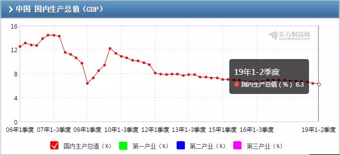 大致从2010年开始,可以说我国GDP增长速度一直在下行,今年第二季度跌到了近年来的最低点,今年上半年GDP同比增速仅6.3%。