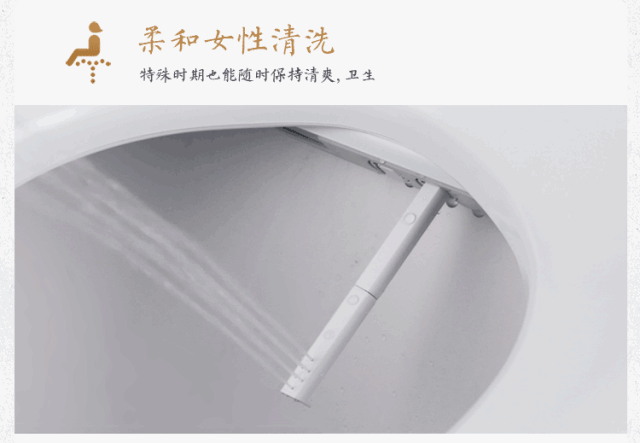 自由调节喷嘴的位置,不同身材的人不用挪动身体去将就喷嘴。还可以让喷嘴往复移动,清洗区域更全面。