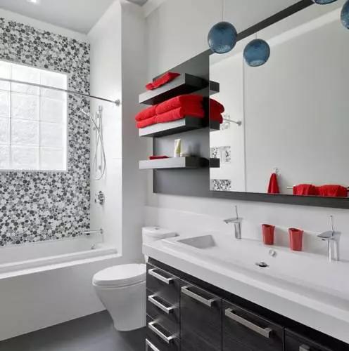 除此之外还可以将卫浴镜与嵌入式收纳结合起来,保证美感的同时,还可以在墙体上方放置物品。