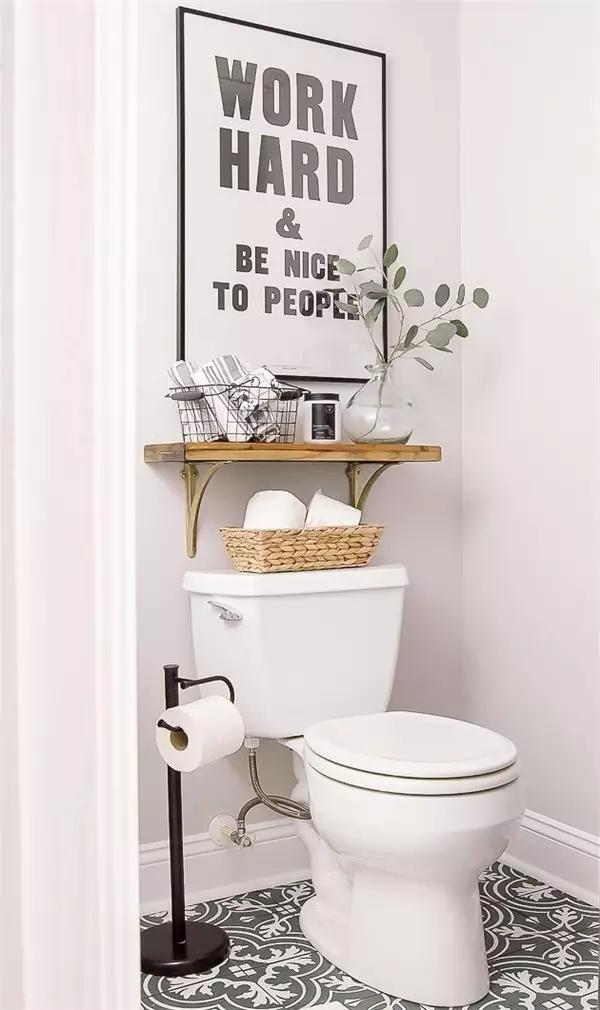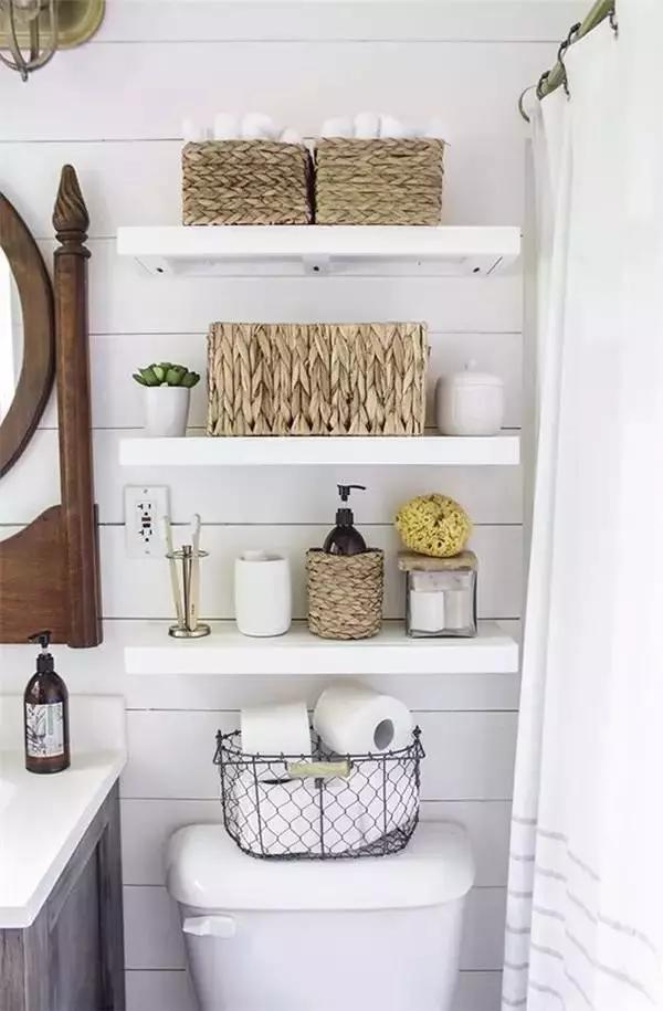 卫生间收纳空间不够,可以向马桶后方光秃秃的墙壁借啊。
