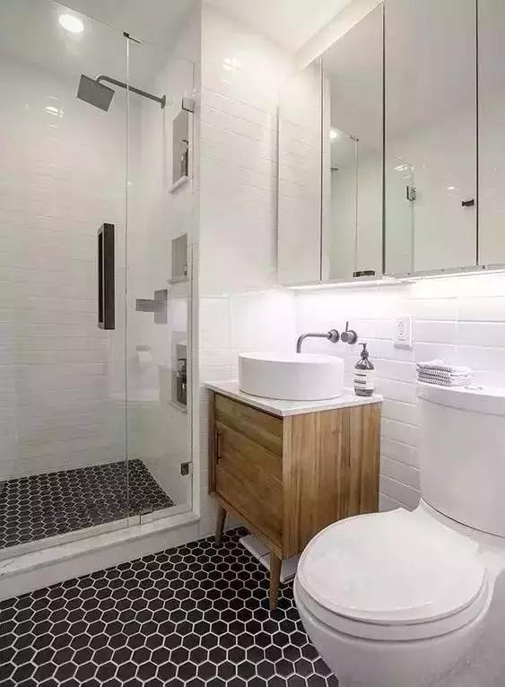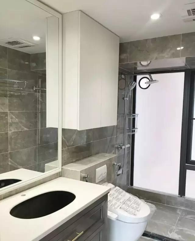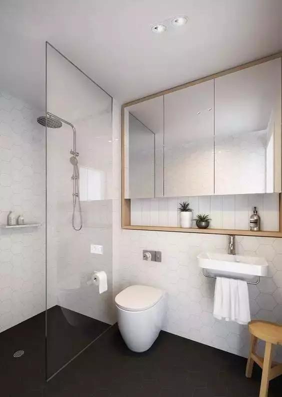 马桶上方放镜子除了日常的使用功能,还有扩容的功能。镜子可以反射、折射、增加室内的亮度,让空间在视觉效果上翻倍。