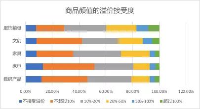 最近,我们发起了《新时代消费者审美特征调研》问卷,在参与调查的390人中,97%的人都愿意为颜值买单。尤其是服饰箱包、家具、文创等行业,消费者更容易接受颜值溢价,甚至部分消费者愿意支付超过百分之百的溢价。