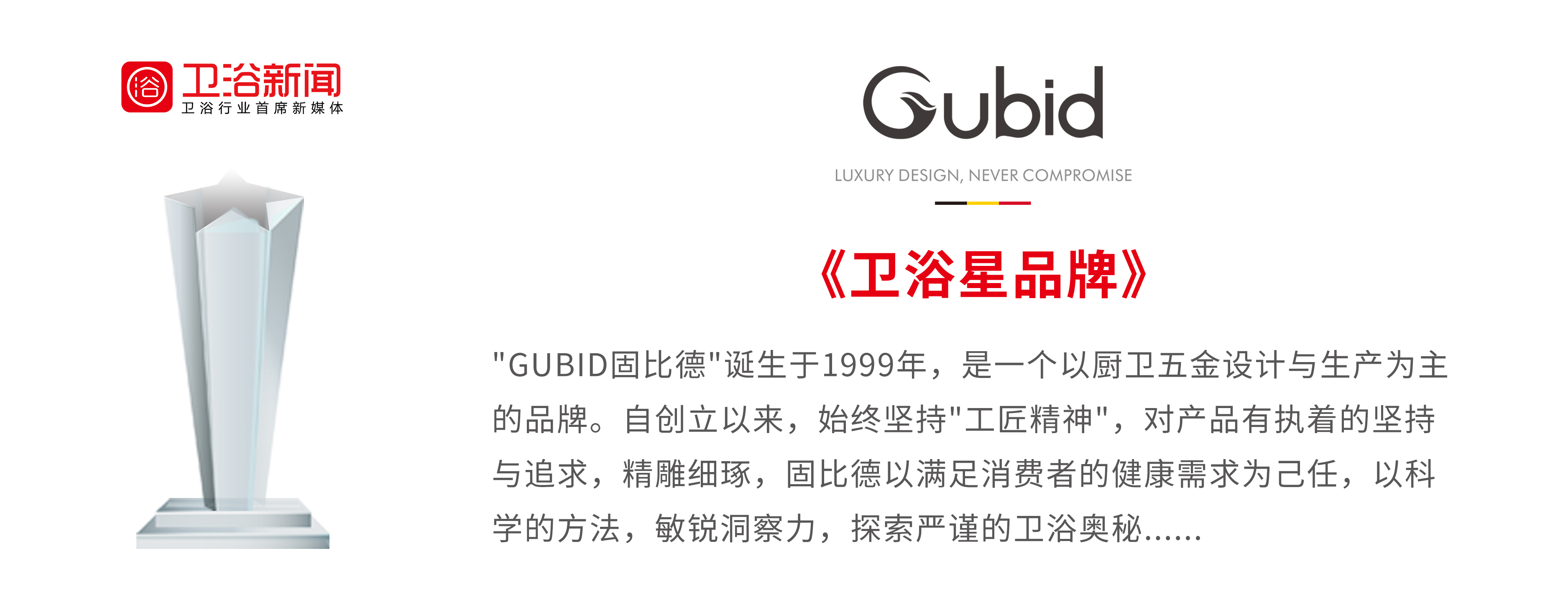 十年时间,从调整市场战略布局到潜心研发产品,多番努力下,GUBID品牌于2009年诞生了;随后的六年时间是其高速发展阶段——全国12家分公司相继成立;2016年品牌全面升级,开始了五金全品类发展,成为国内五金卫浴品类的佼佼者,荣膺众多行业知名奖项。2018年,GUBID固比德携多款“明星新品”首次亮相上海厨卫博览会,再次引爆整个行业,成为众口相传以及行业争相模仿的对象。