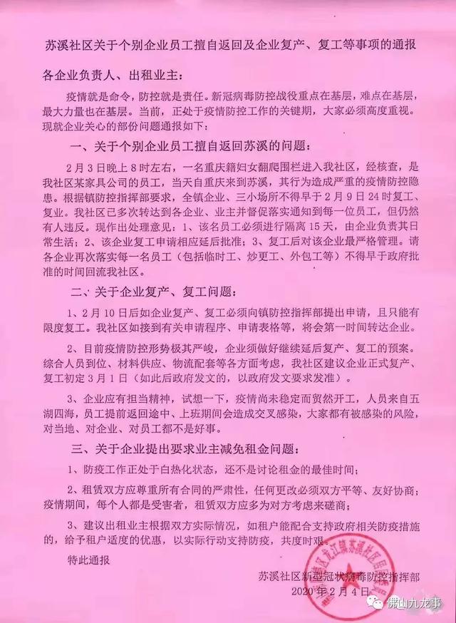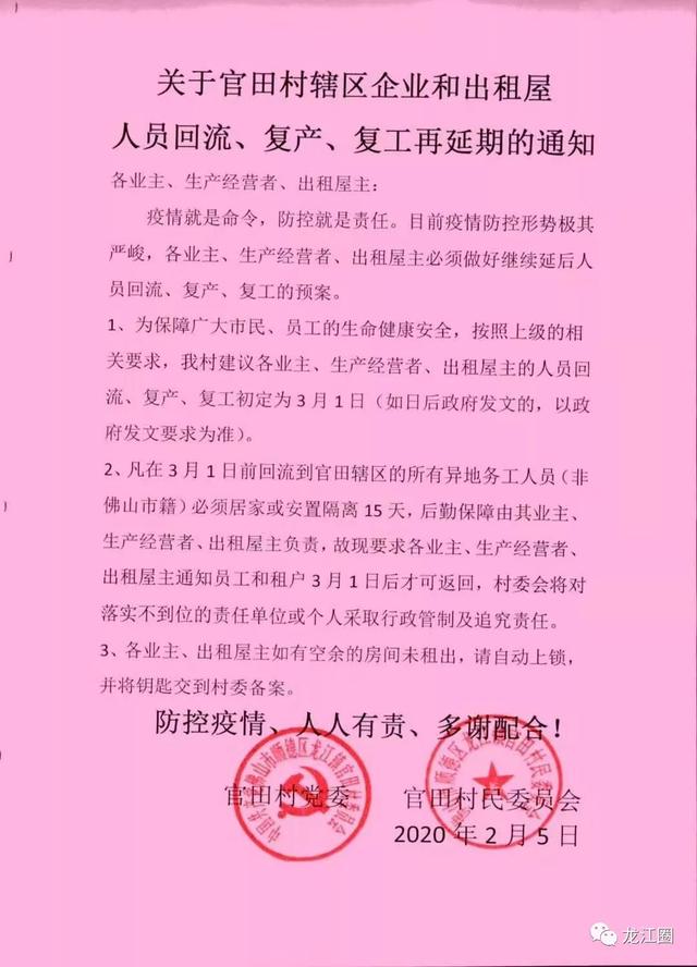 3、要求各业主、生产经营者需通知员工3月1日后方可返回工作地!