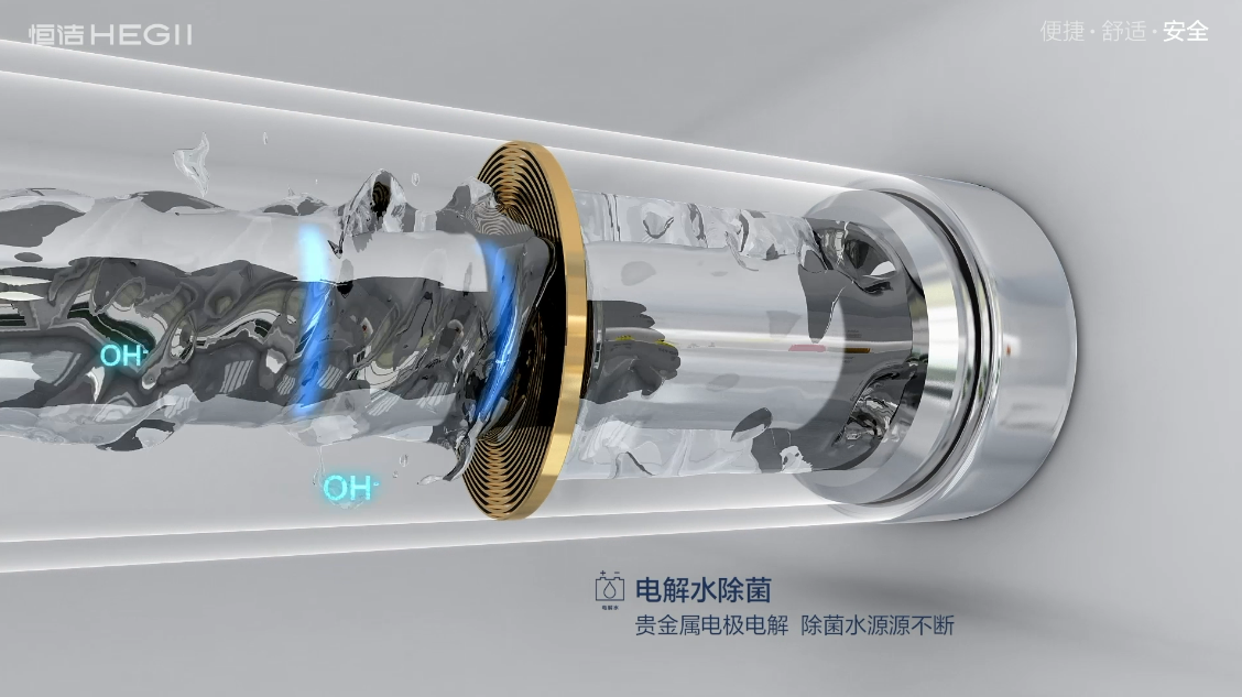 恒洁Q9/ Q10智能一体机的出水管路采用电解水除菌,可99%除去管路积水产生的细菌,配合自动清洗功能确保管路及喷嘴的无菌环境,从源头带来洁净的享受。