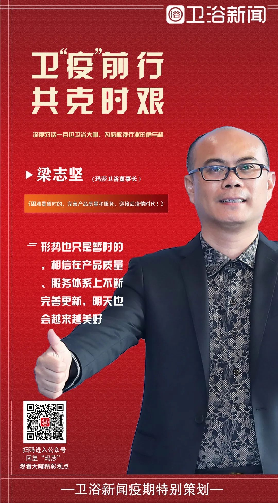 最后,梁总告诉记者,虽然说类似网络营销、云平台、新零售等形式,已经发展很多年,在此之前鉴于卫浴行业的特殊性,发展运用的没有快消品行业那么成熟,过去我们有做尝试,但还未发展到成为公司主流的销售平台。而现在疫情相当于起到了催化剂的作用,电商、线上营销也将成为今年玛莎企业发展方向的侧重点。梁总说到,这次新冠肺炎疫情对国人而言是一次灾难,对卫浴行业而言我认为是一次“大考”,更是行业发展的助推剂和加速器。