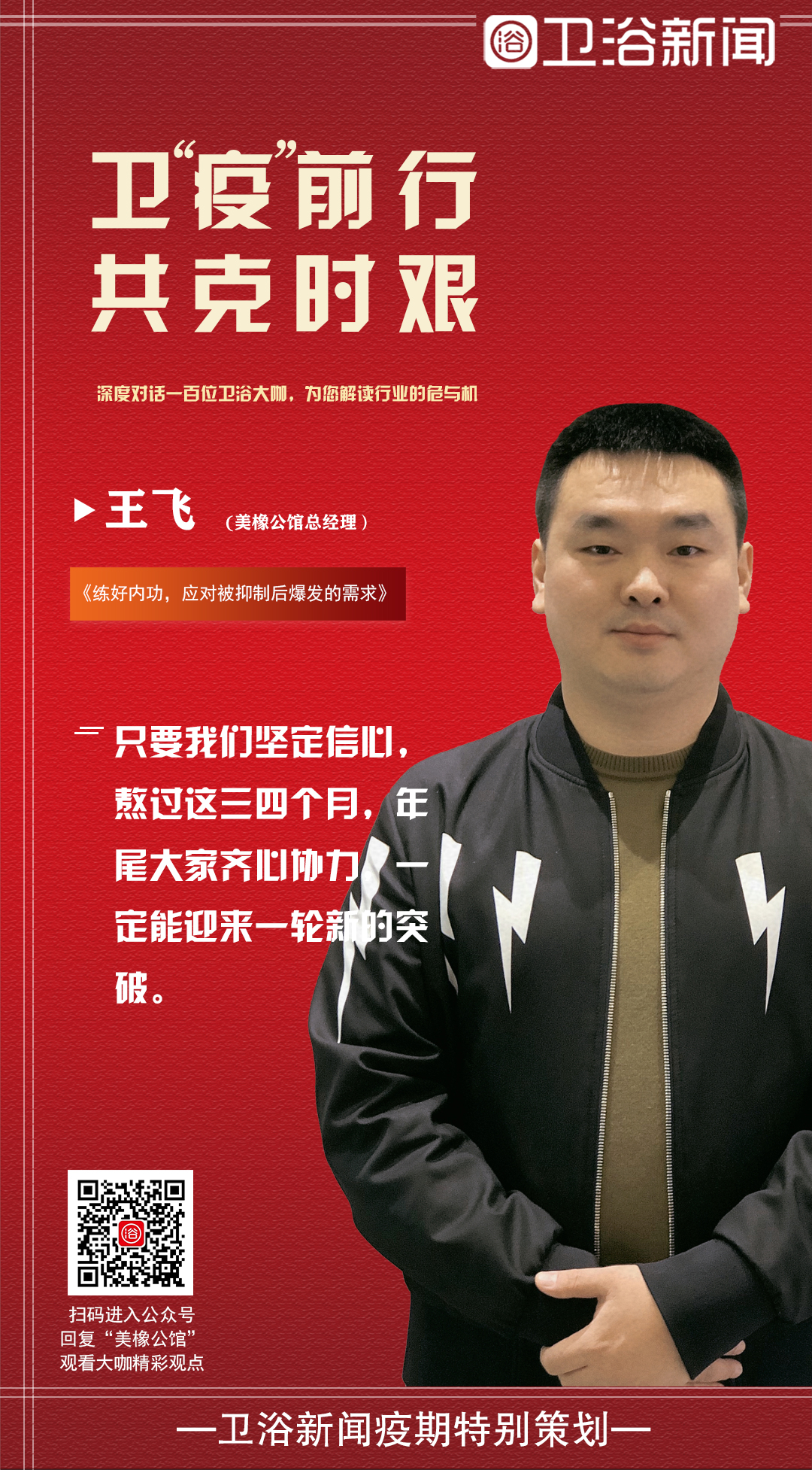 近日,我们有幸在线上采访到美橡公馆卫浴王飞,由王总和大家分享美橡公馆卫浴的复工情况及相关举措,希望能有所帮助,有所启发。