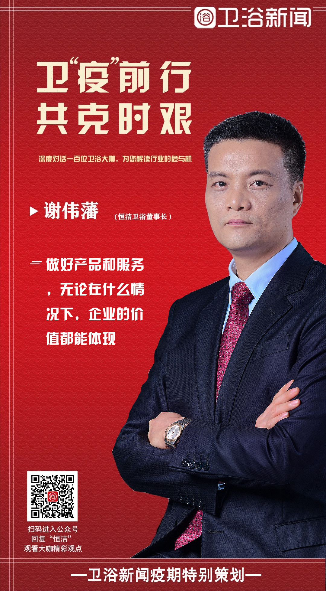谢伟藩表示,这次疫情恒洁能从容应对,也证明了恒洁此前一直坚持的专注品质、持续创新、倡导环保的发展方向是正确的,恒洁也将继续通过研发和创新,为卫浴产品注入更多的健康、智能元素,在升级国人生活品质的同时,为更多中国家庭守护健康。