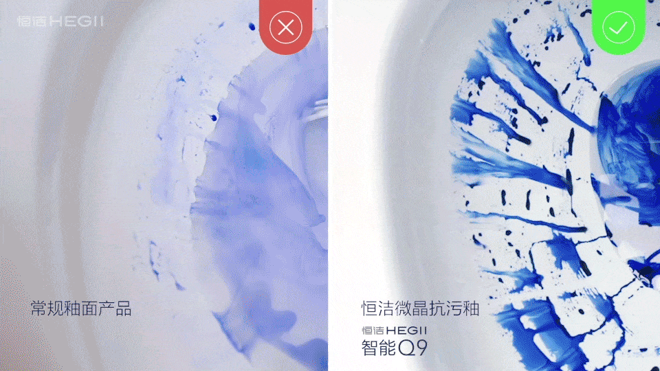 更值得一提的是,恒洁智能双Q坐便器陶瓷体均采用微晶抗污釉技术,它防污易清洁,可减少细菌附在陶瓷表面,不给藏污纳垢的机会,减少二次污染。同时,采用微晶抗污釉技术的陶瓷体,经过 1260°高温烧制,一体成型、密度高、吸水率低,再加上管道全面施釉,让污垢难以粘附在陶瓷表面,令冲洗变得更加简单畅快,有效守护如厕卫生。