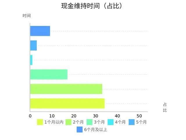 数据显示,34%的企业只能维持 1 个月,17.91%的企业能维持3个月,仅9.96%的企业能维持 6 个月以上。