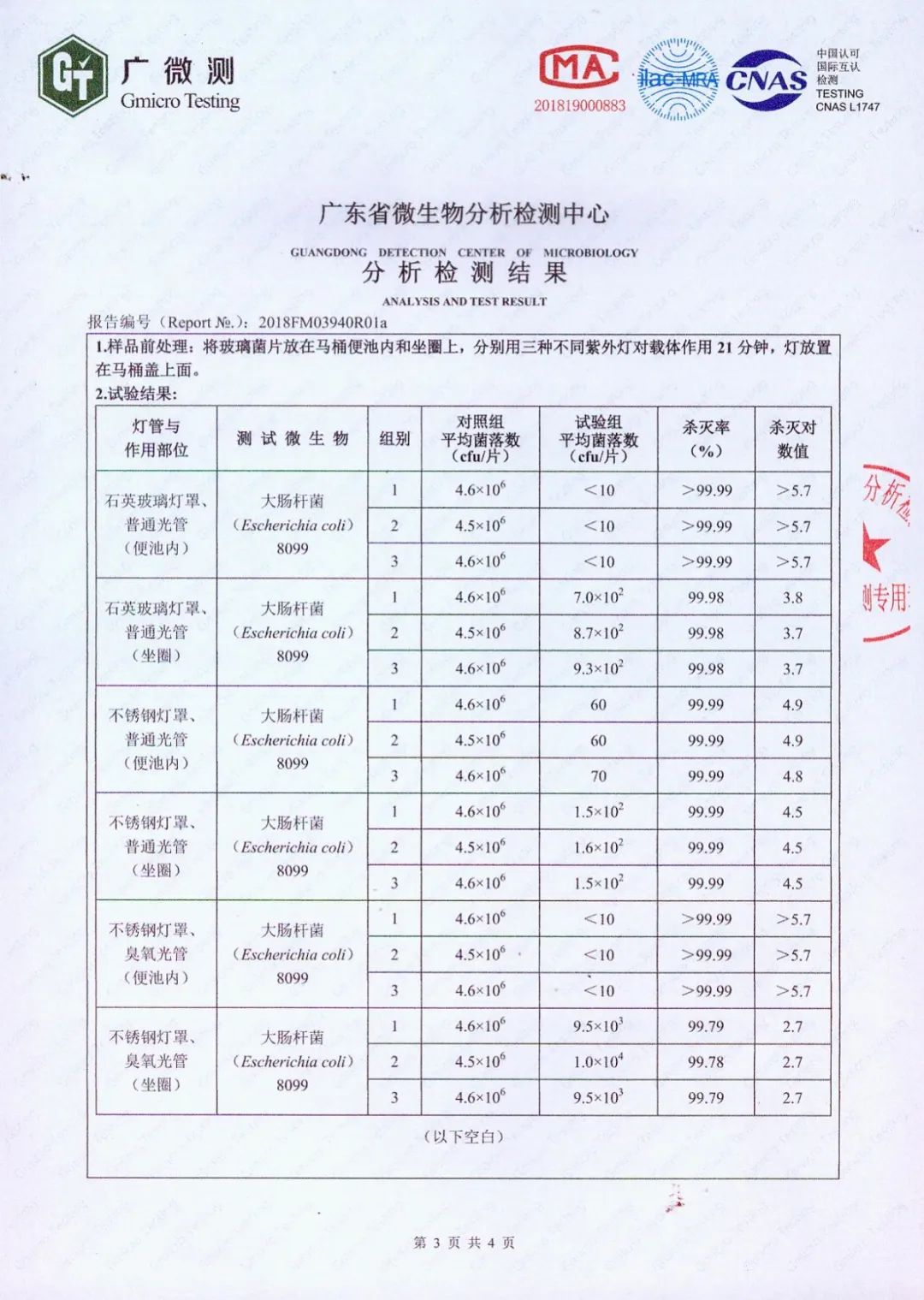 医用级光波UV技术对细菌、病毒一般在一至二秒即可达到杀菌效果,完美实现强力杀菌, 更有广东微生物检测中心的检测报告测验,这款光波UV马桶对大肠杆菌的杀菌率高达99.99%,权威认证,强者以实力说话,为消费者安全护航。