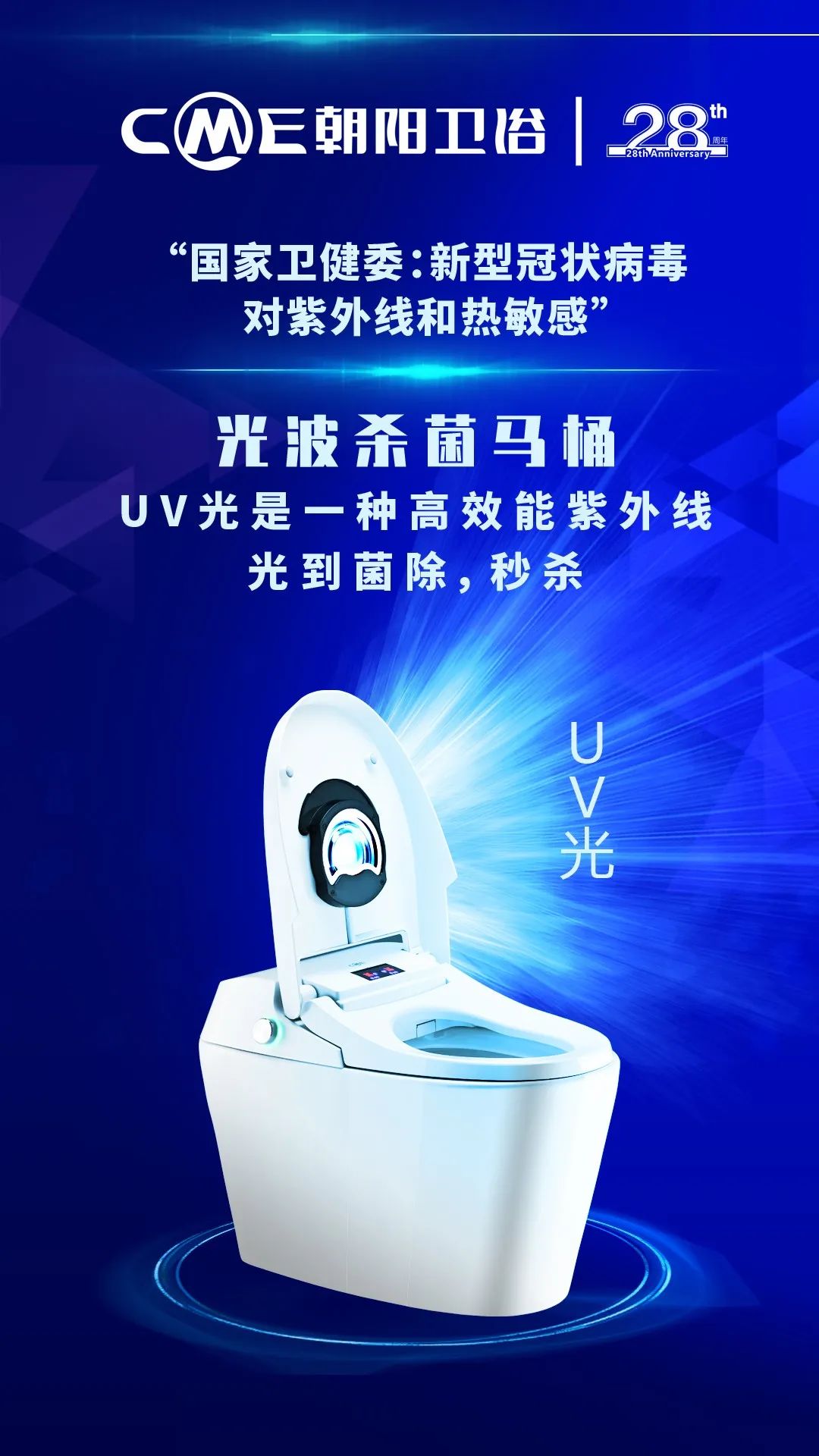 而搭载了光波UV(高效能的紫外线)的朝阳光波智能马桶,利用多波型跳码脉冲扫描UV光,通过穿透率超强的石英玻璃,完美的将光波UV广角式对便池、座圈等空间不留死角进行杀菌。
