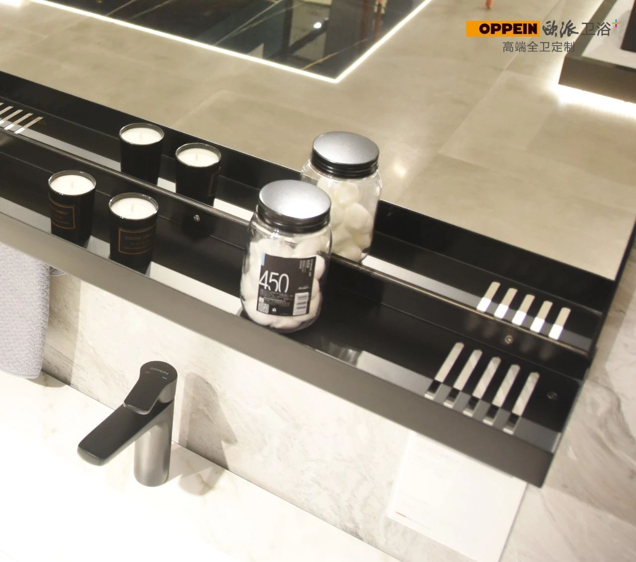 镂空金属层板 镜下设金属层板,方便放置洗手液,肥皂、棉签等小物品,避免台面杂乱。镂空设计,最适合洗手台环境。