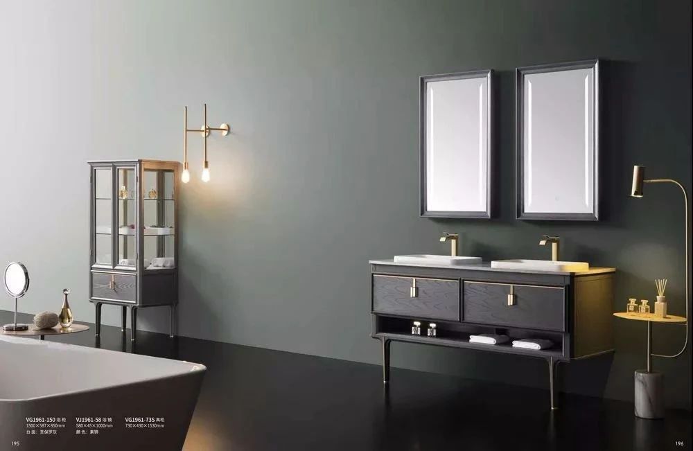 朗司碧玉系列浴室柜,门板与层板的巧妙融合,形成超强储物收纳空间, 免漆板与实木烤漆的搭配,黑褐色碰撞上哑白色相得益彰,现代简约风格,注重高品质与设计感,将优雅时尚的质感结合着现代材质及装饰技巧巧妙地呈现在浴室中,展示着精致高端的生活态度。