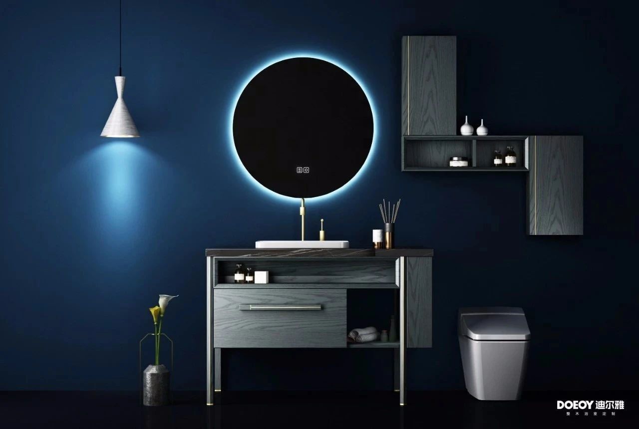 迪尔雅X20系列浴室柜,简约之中凸显出时尚品位,实用当中尽显匠心细节,每一件产品的背后,都凝聚着一个企业的信念。从设计到选材,从生产到对每一道工艺的精雕细琢,成型了X20系列;黑泽金岩板台面+实木柜体+搭配以金属条的组合设计,便有了迪尔雅卫浴X20系列浴室柜。