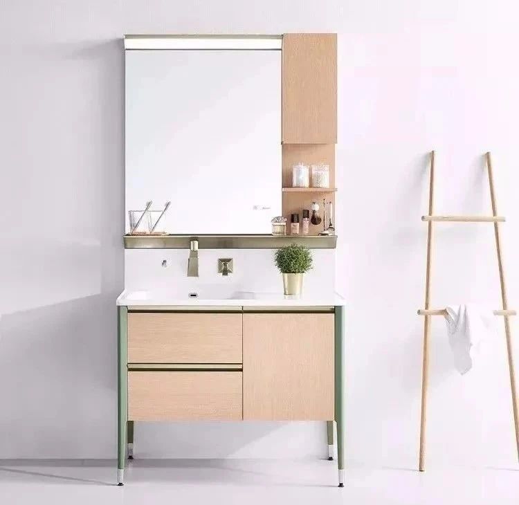 席玛2018A5-1000浴室柜采用的是目前最流行的现代简约风格,浴室柜以柚木色为主,简约的设计让它成为现代简约家装风格的首选。而腿脚的那一抹草绿色和柜体颜色相撞,使得整个浴室柜简约上又不失风趣,两种颜色相得益彰,给人一种现代的小资情调。浴室柜台盆采用玉晶石一体式台盆,坚硬且耐磨耐损耗,能做到十年如斯,搭配上金属色水龙头便让空间充满了品质感。