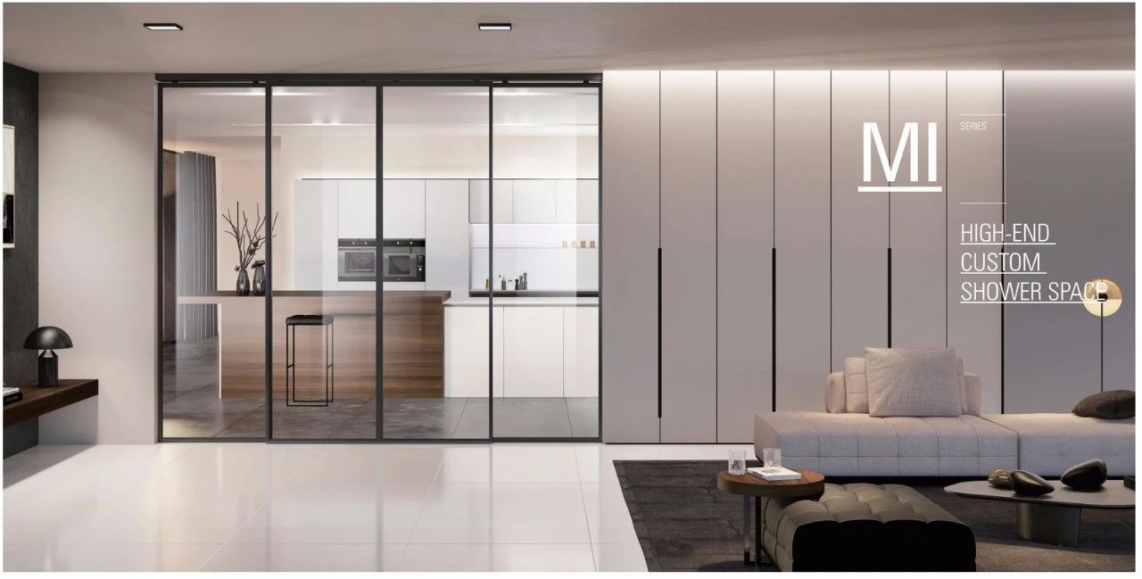 伊米特全景门系列,采用极窄边框,边框线条简约流畅,时尚却不张扬; 加厚边框设计,采用航空级原生态钛铝合金型材料,强度高,韧性和抗腐蚀性能好,使用寿命更长,选用汽车级别3C钢化玻璃,通体8mm厚度,安全耐用;隔音减震胶条,性能稳定,环保耐用,起到了防水、密封及节能的重要作用,隔音、防尘、防冻、保暖 。