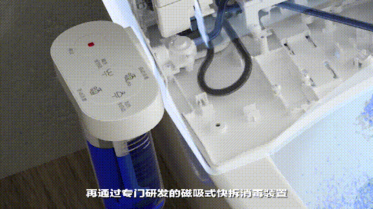 当你使用完马桶时,彻底的消毒喷洒就自动开始执行,通过专门研发的磁吸式快拆消毒装置,喷淋消毒液,360°全方位消毒杀菌。不仅让卫生间环境更加洁净,也为家人的下次使用做好健康防护。