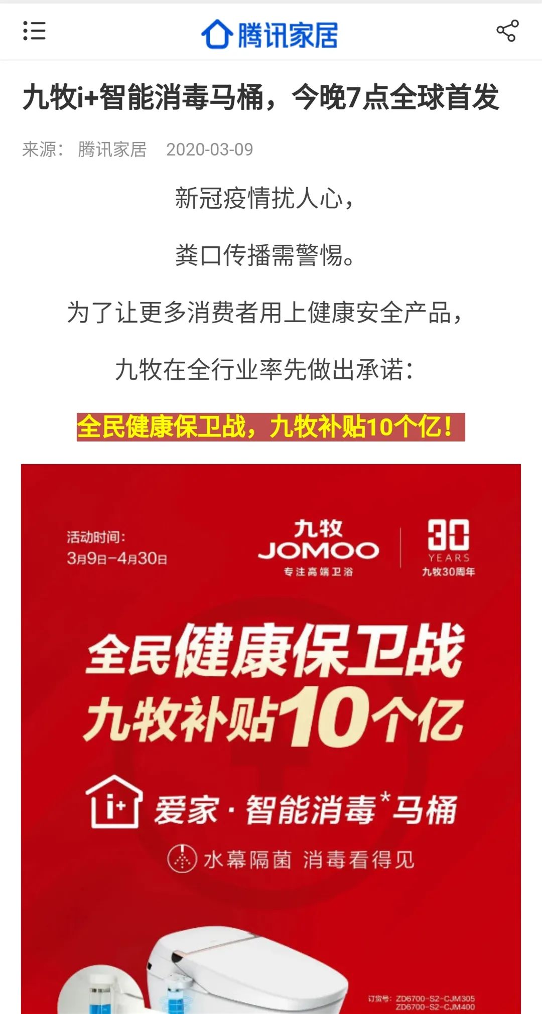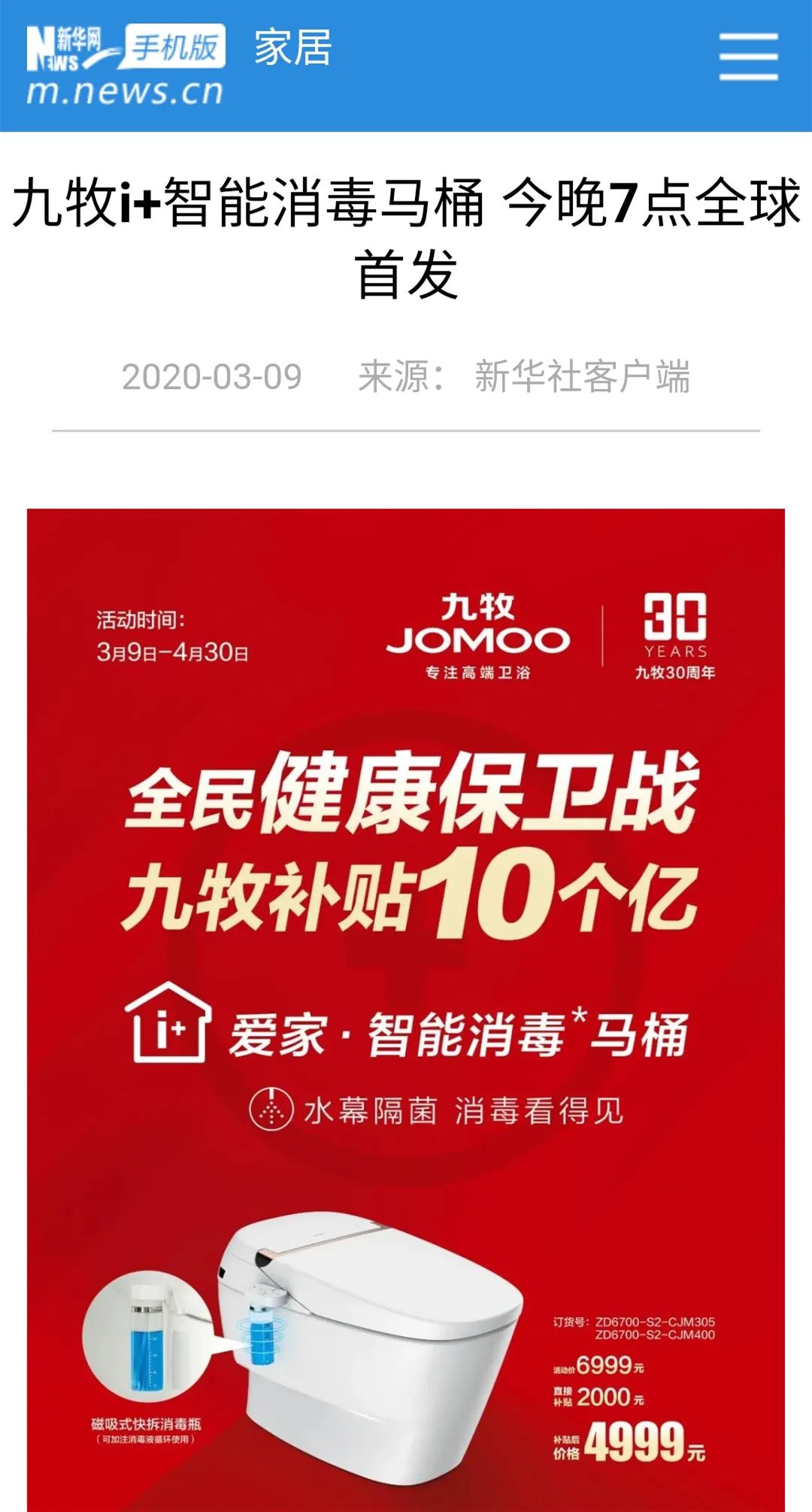 九牧i+智能消毒马桶全球首发,以科技防控守护健康中国!