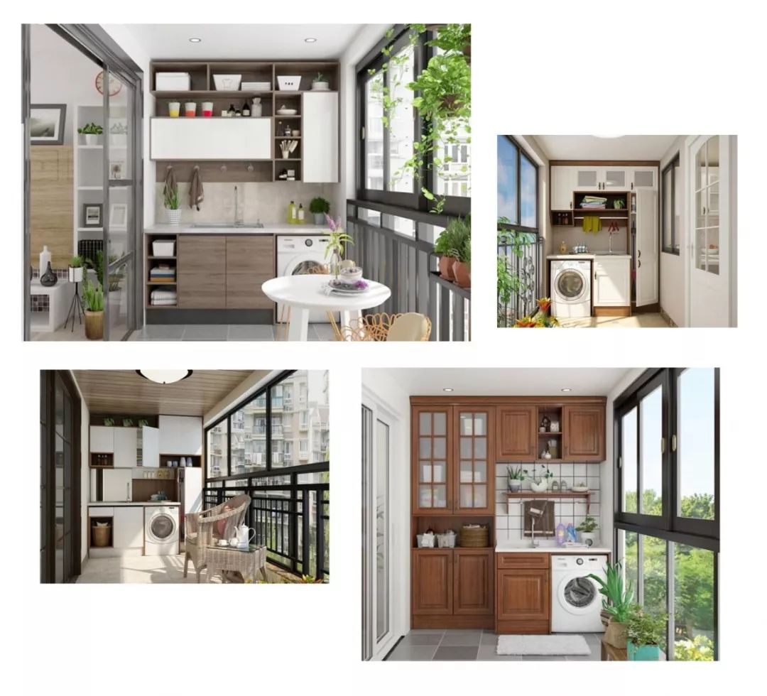阳台千万不要荒废,只是简单的晾晒衣服、堆放杂物太可惜。利用定制阳台柜,将阳台改造成集洗衣、晾晒、储物、休闲于一体的空间,比多买一间房值~