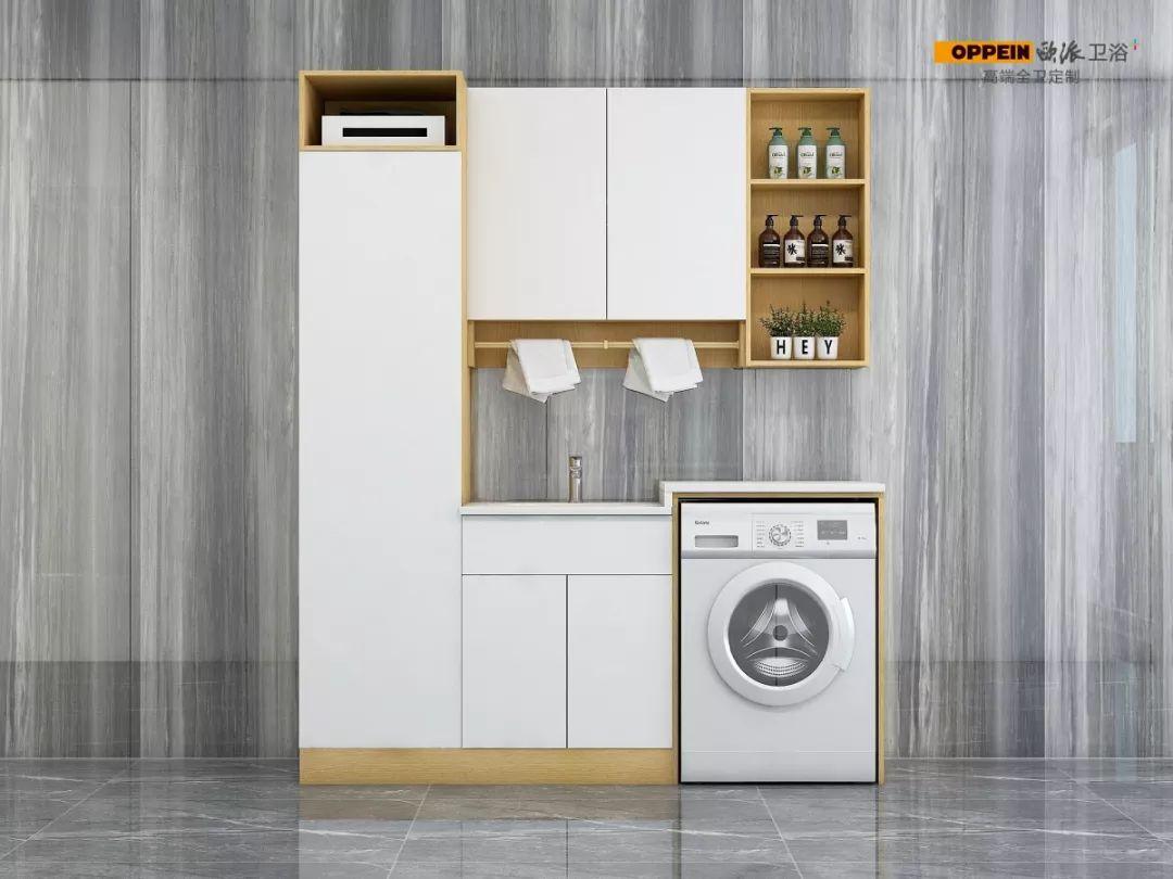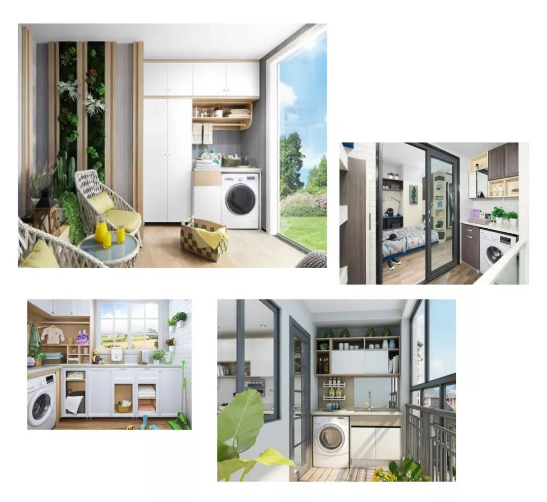 例如,有的家庭仅需简单的洗衣收纳,配置上下柜即可;有的家庭需要扫帚拖把收纳,则需要增加中高柜。这些组合,都可以根据需求选择定制。