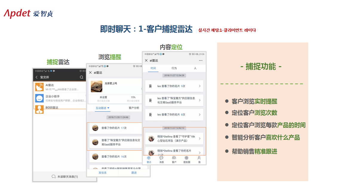 通过拥抱新零售,爱智贞小程序将通过精准引流—互动培育—转化成交新的营销思路,全网精准促销模式。并通过创新开发的智能名片、爱智贞商城、 即时聊天、智能销售管理、Boss管理雷达超级官网、SCRM客户管理等十大功能,以抢占新的流量红海。