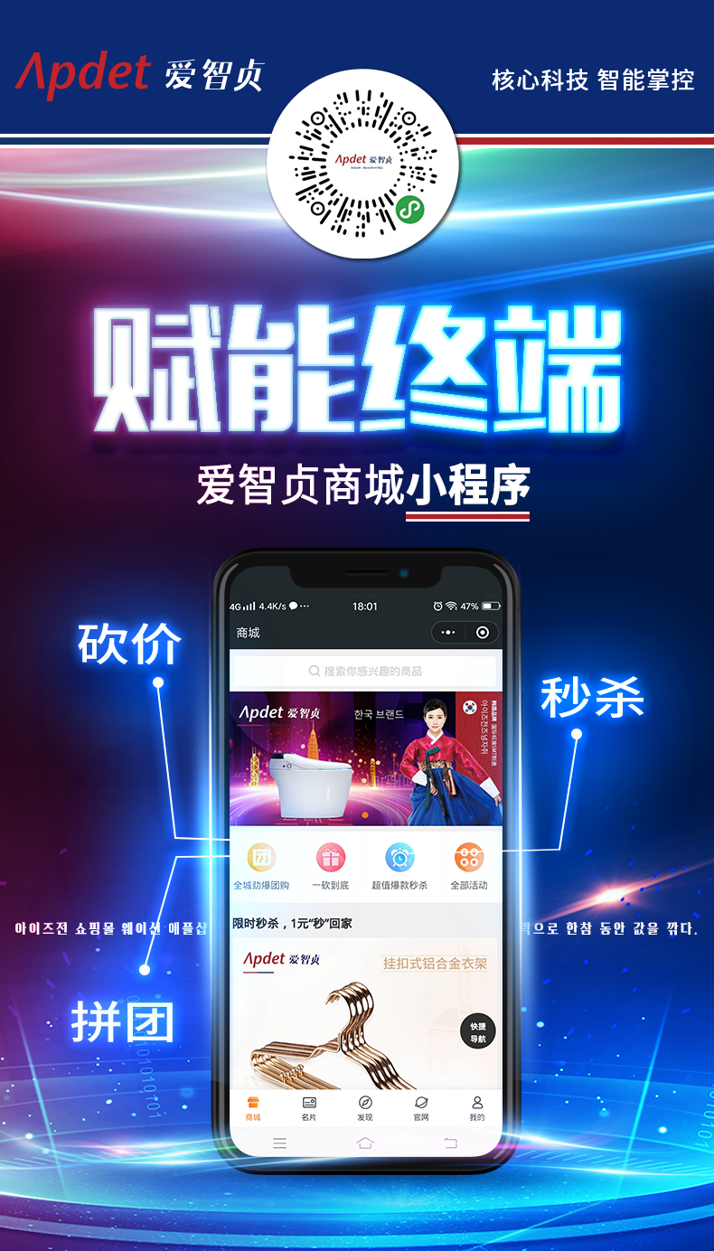 作为智能马桶行业的创新先锋者,爱智贞用互联网工具重新定义智能马桶行业新零售。他们依托微信AI新零售门店,创新开发了“爱智贞商城微信小程序”赋能终端。小程序将于3月13日正式上线,正式开启爱智贞终端新零售。