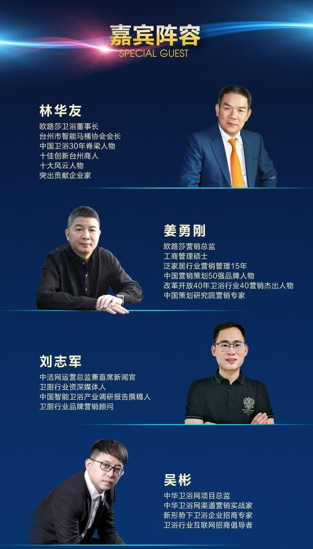 据悉,欧路莎将于3月27日就“新形势下如何选择品牌”的话题进行一场第一季线上财富招商峰会,出席本次峰会有欧路莎卫浴董事长林华友先生、欧路莎营销总监姜勇刚先生、卫浴新闻创始人高声伟先生、中洁网运营总监兼首席新闻官刘志军先生等多位卫浴领航人、卫浴传媒领航人,可谓是大咖云集,干货满满,值得观看!