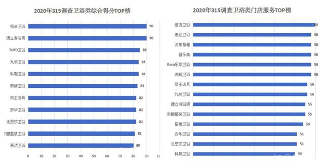 继2019年恒洁与海尔、格力、美的等各行业领军品牌一道,赢得「全国售后服务十佳单位」荣誉后,在近日揭晓的网易家居315家居服务调查报告中,恒洁又从众多国内外知名卫浴品牌中脱颖而出,在“2020年315调查卫浴类综合得分TOP榜”、“2020年315调查卫浴类门店服务TOP榜”两大榜单均占据榜首,成为网易家居315服务调查十年大考的“双料冠军”。