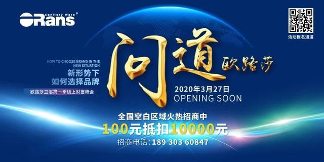 据悉,欧路莎将于3月27日就“新形势下如何选择品牌”的话题进行一场第一季线上财富招商峰会。届时,欧路莎卫浴董事长林华友、营销总监姜勇刚、中国陶瓷工业协会智能卫浴分会执行秘书长喻镇荣、中洁网运营总监刘志军、中华卫浴网项目总监吴彬等行业资深人士将出席论坛会议,强势嘉宾阵容为行业发展共同助力。