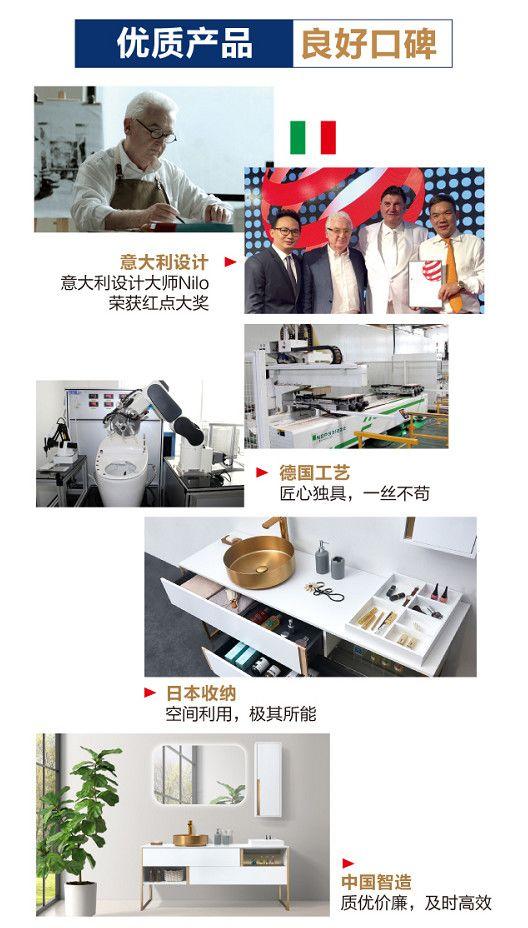 欧路莎轻奢系列浴室柜,具有防尘柜盒,柜体收纳、平台收纳等,空间的合理分配,不仅满足了消费者对于置物的方便,同时也避免了忽视死角卫生,而导致“病菌”的潜藏。