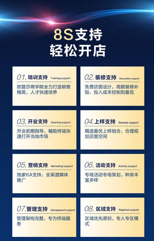 欧路莎卫浴一直在用行动履行承诺,与经销商同呼吸、共命运,为经销商提供培训、装修、开业、上样、营销、活动、管理、区域8大支持。同时,欧路莎卫浴有专卖店、分销店等多种经营模式可供自由选择,经销商可根据自身实际情况灵活投资。