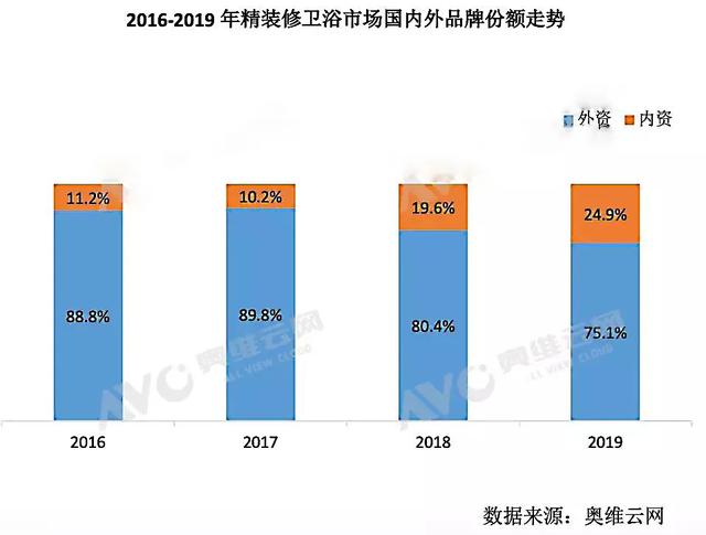 需要关注的是,2019年精装修卫浴市场形势严峻的同时,工程市场这块“大蛋糕”的分配方式发生着变化。以往科勒、TOTO等国际品牌独占鳌头的局面开始转变,惠达、九牧等国内品牌进入TOP10行列。