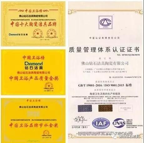 钻石洁具推出的纳米建筑卫生陶瓷荣获“国家级重点新产品”称号,研制开发的“多彩胎体高温釉下彩卫生洁具陶瓷及其制造工艺”、“陶瓷卫生洁具釉面装饰工艺”荣获国家发明专利;“增压式座便器”、“兼有座厕功能的蹲便器”荣获国家实用新型专利。