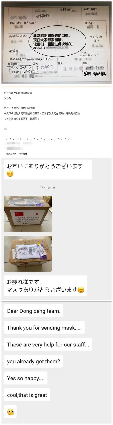 After receiving masks from Dongpeng, partners all over the world express their heartfelt thanks.
