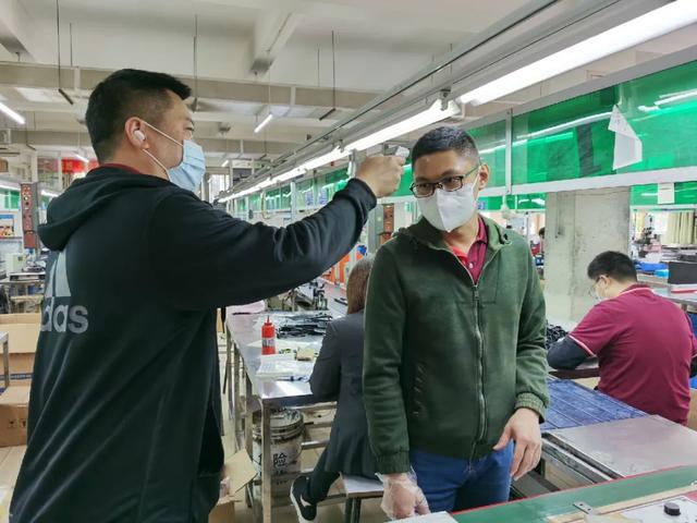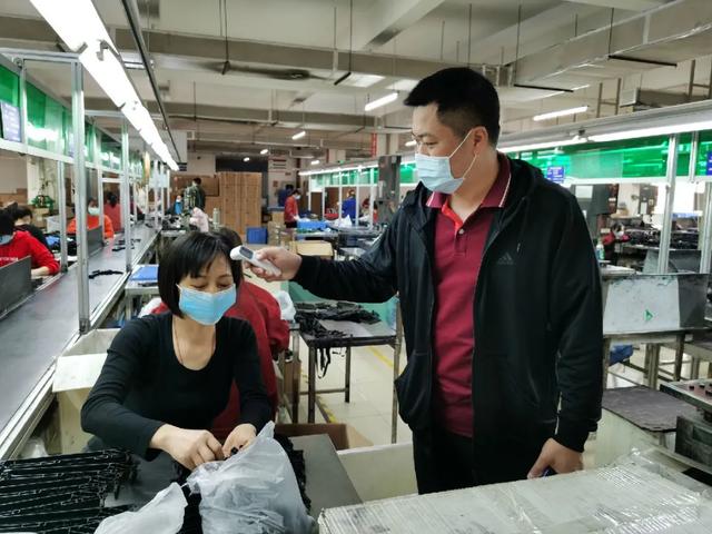 为了防止交叉传染,密集的工序全部疏散一米以外,面对面操作的全部规划为单向作业。下班消毒,上班通风,中休不交谈,见面点头问候。这些点滴都是一线员工为了保障复工顺利而自发行动。