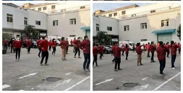 事业部赵秀玲、魏功兰提议,以锻炼身体,提升免疫力来抵御疫情。即使戴着口罩,依旧每天7点25分在保持安全距离排列在空旷的场地,认真做广播体操,从不间断。