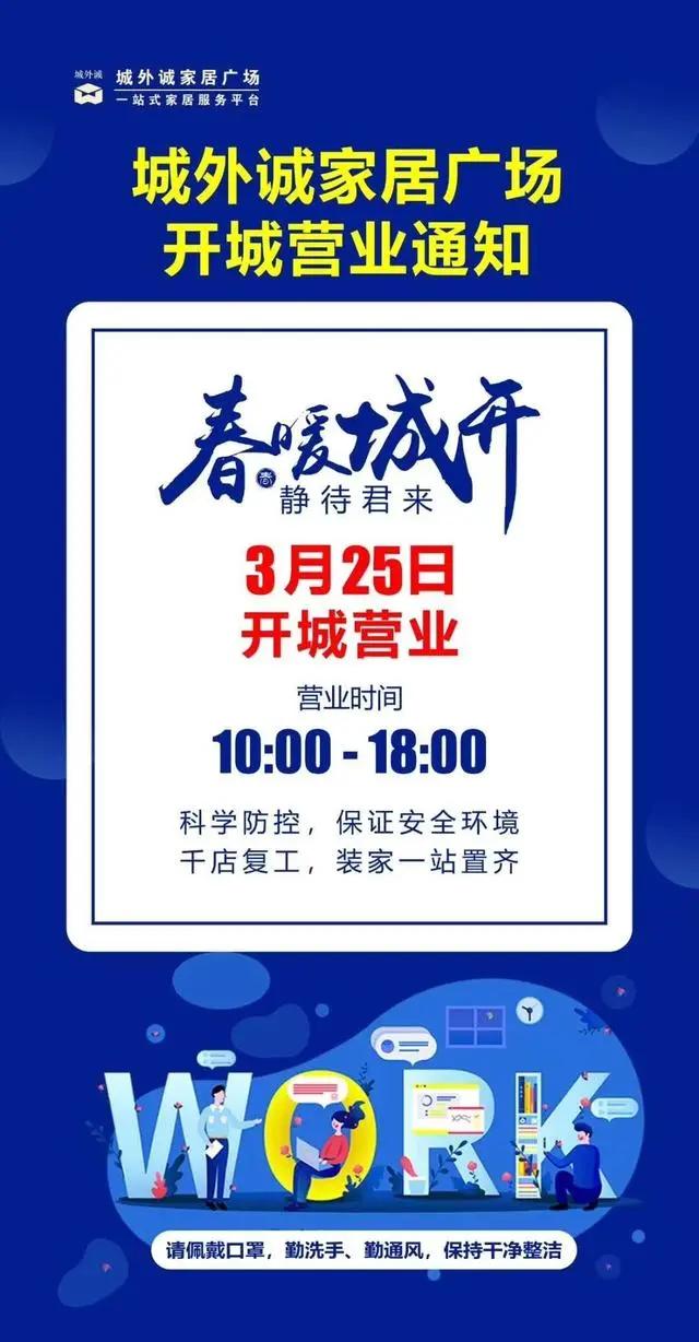 经历五次开业延期调整,北京城外诚家居广场终于定下最新营业时间。2020年3月22日,城外诚将于3月25日开城营业,营业时间为10∶00-18∶00。