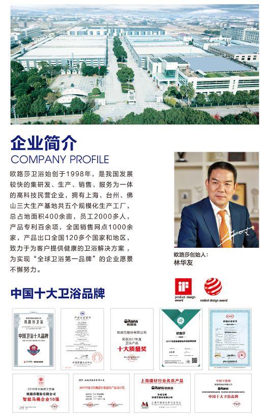 欧路莎卫浴始创于1998年,有五大规模化工厂,产品专利百余项,全国销售网店1000余家,产品出口120多个国家和地区,采用意大利设计,德国工艺,日本收纳等技术,成为中国“智”造。产品线丰富,充分满足消费者对卫浴产品的需求。稳定的产品品质赢得了社会和消费者的认可,时尚的设计成为当下潮流的“宠儿”。