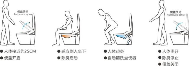 例如,Gobo高宝厨卫GC-ZN1813全自动智能马桶,该款产品采用全智能感应技术,当人走近坐便器约25-30cm时,便盖将自动开启;当人离开坐便器后,便盖将自动关闭,具有人性化的自动冲水功能,在您如厕后离开时,自动冲洗坐便器,无需手动操作。在特殊时期,避免交叉感染带来的困扰和风险。