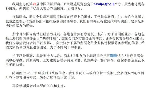 上海厨卫展官方回复来了!