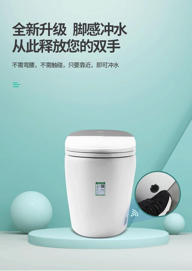 产品全新升级,采用脚感冲水,从此释放了消费者的双手,极大的避免了病毒感染;当消费者即将靠近马桶的手,雷达自动感应,从而实现自动翻盖,无需消费者自己开盖,有效预防了因为接触到了马桶而产生的交叉感染。