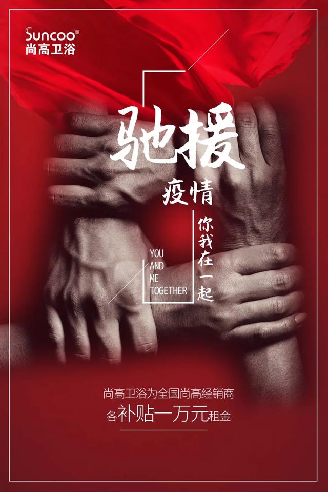 面对经销商的店面租金、人员成本、原材料成本等问题,尚高卫浴进一步强化担当精神,践行社会责任,为了帮助经销商共渡难关,经尚高卫浴研究决定,为全国经销商每家补贴1万元租金,减轻经销商财务压力。