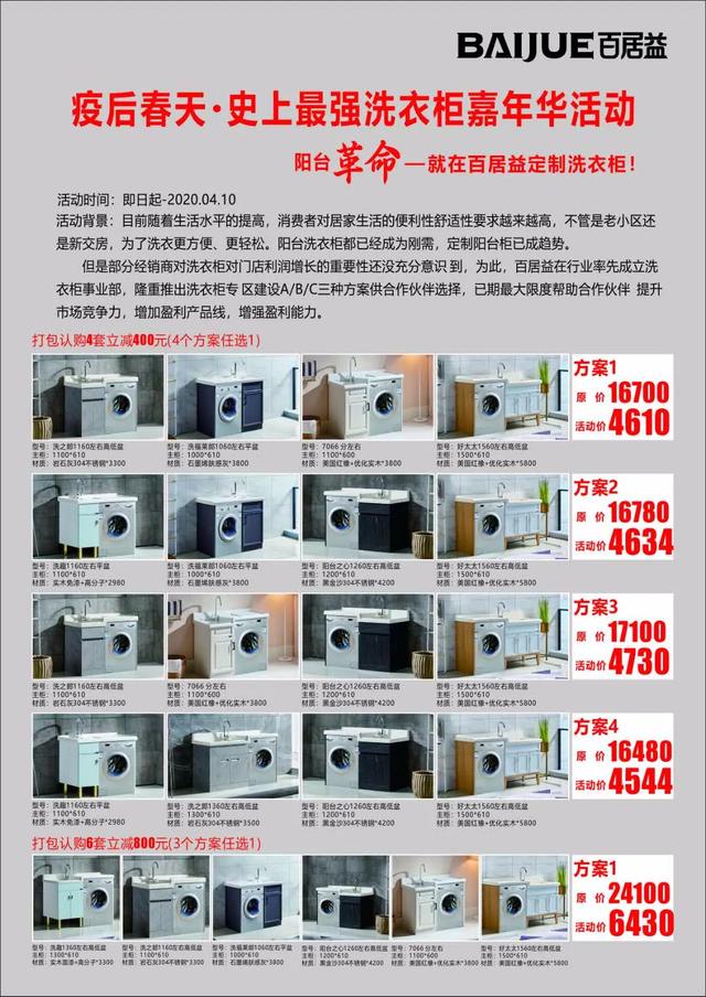 为回馈广大经销商一直以来对百居益卫浴的厚爱与支持,以感恩之心回馈社会。百居益卫浴迎着“定制洗衣柜”的浪潮,在全国掀起了十足“价”势,打造长达一个月的大型促销活动,为经销商带去一场高品质同时又经济实惠的促销盛宴。