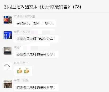 首期培训已覆盖了50多家终端门店,学员反响积极,参与两周培训的学员对酷家乐工具和培训导师的满意度分别达到了9.0和9.7,并在学习群中表达了对培训安排和老师的由衷感谢。