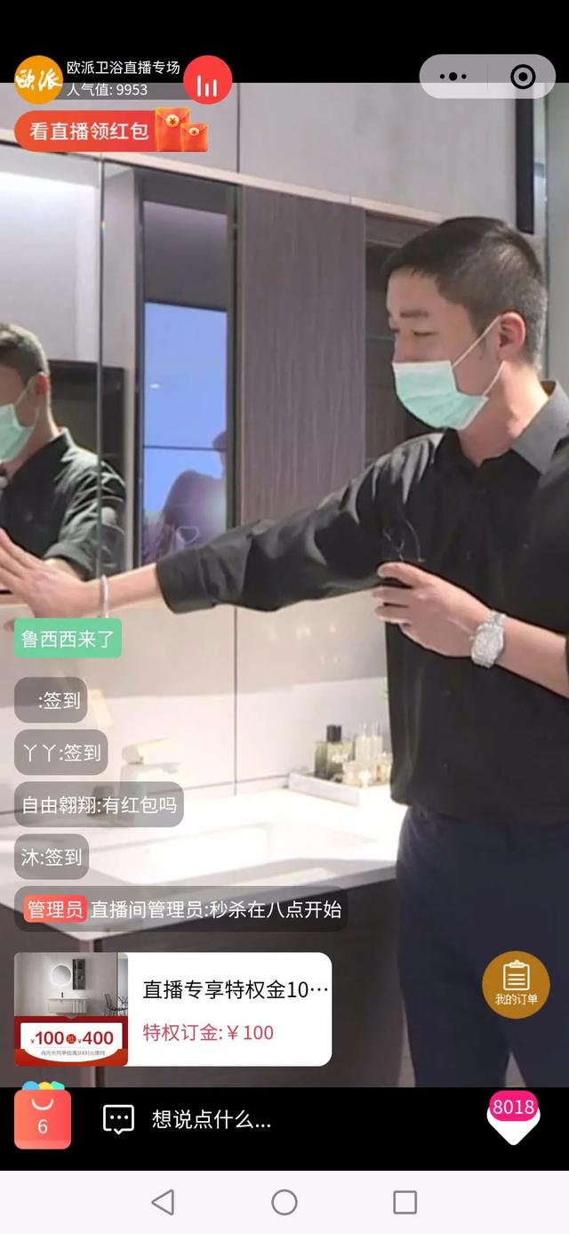 4月9日晚7点,欧派卫浴在腾讯小程序、腾讯看点、淘宝直播、京东直播等平台上演了一场“欧派春装节”全国大型直播促销活动会,参加直播的朋友持续上涨,并且连获诸多好评。